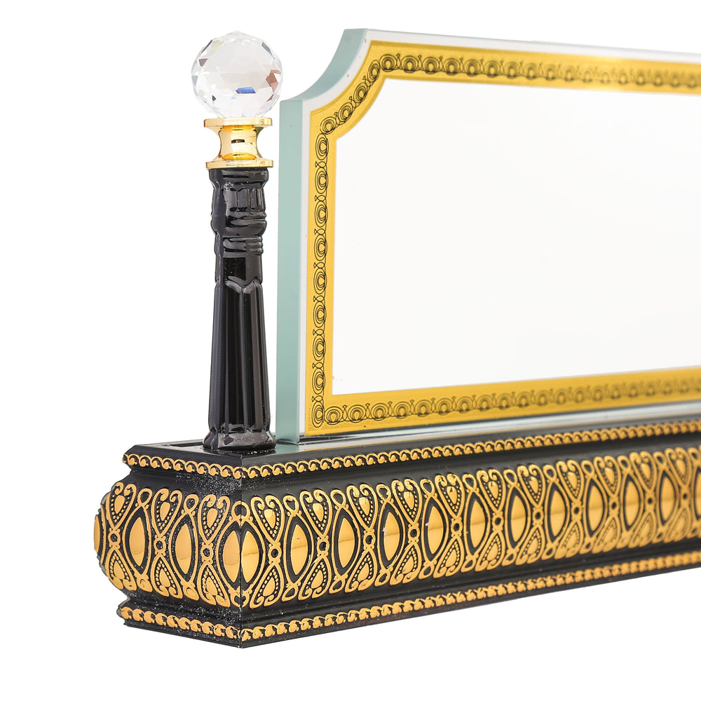 Rounded Wooden golden base crystal desk name plate with pen holder