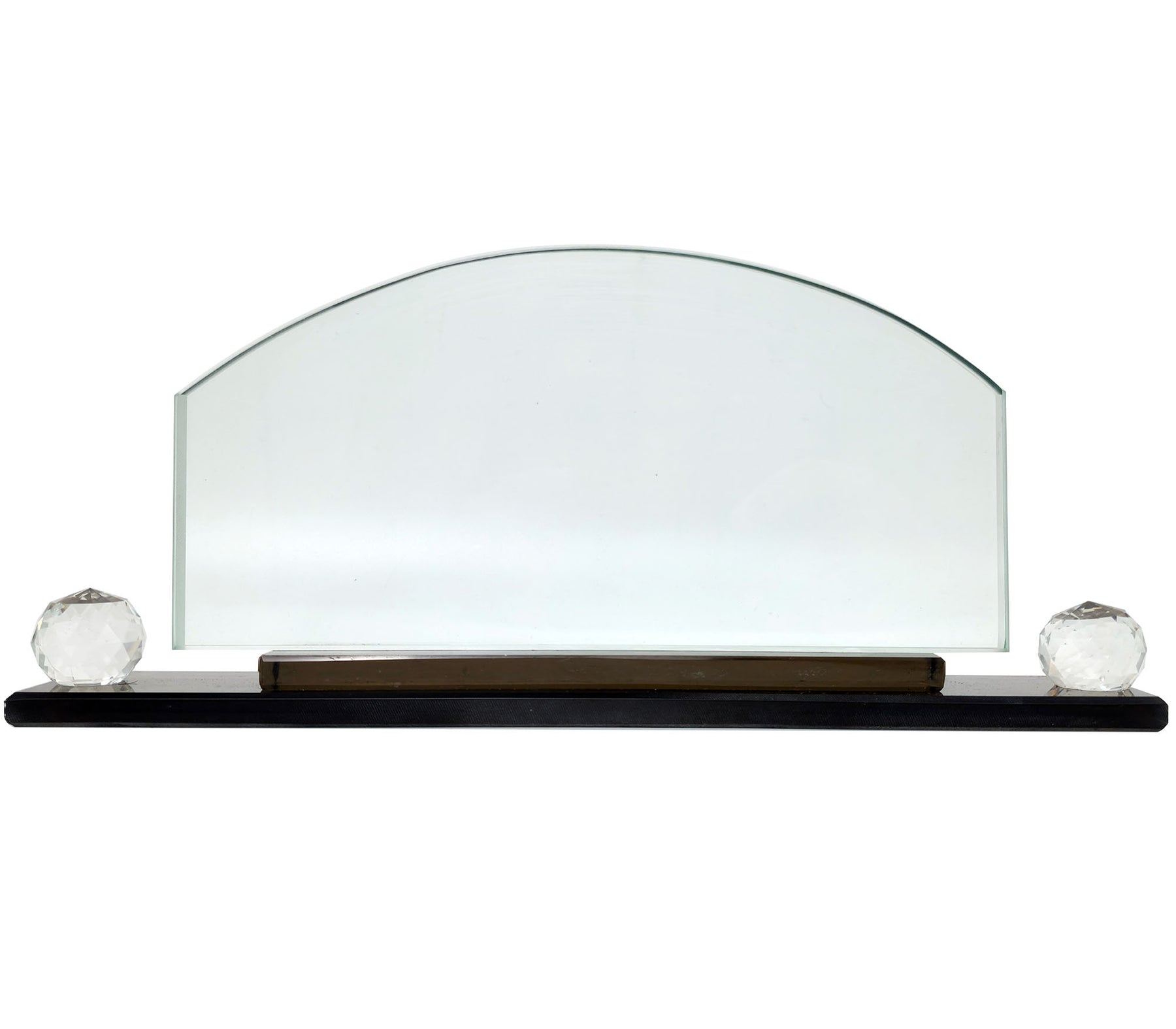 Elevate your desk with the elegant Arch Crystal Desk Name Plate. This stunning crystal name plate adds a touch of sophistication to any office space. With its sleek arch design, it's the perfect way to showcase your name or title. Impress your clients and colleagues with this impressive desk accessory!