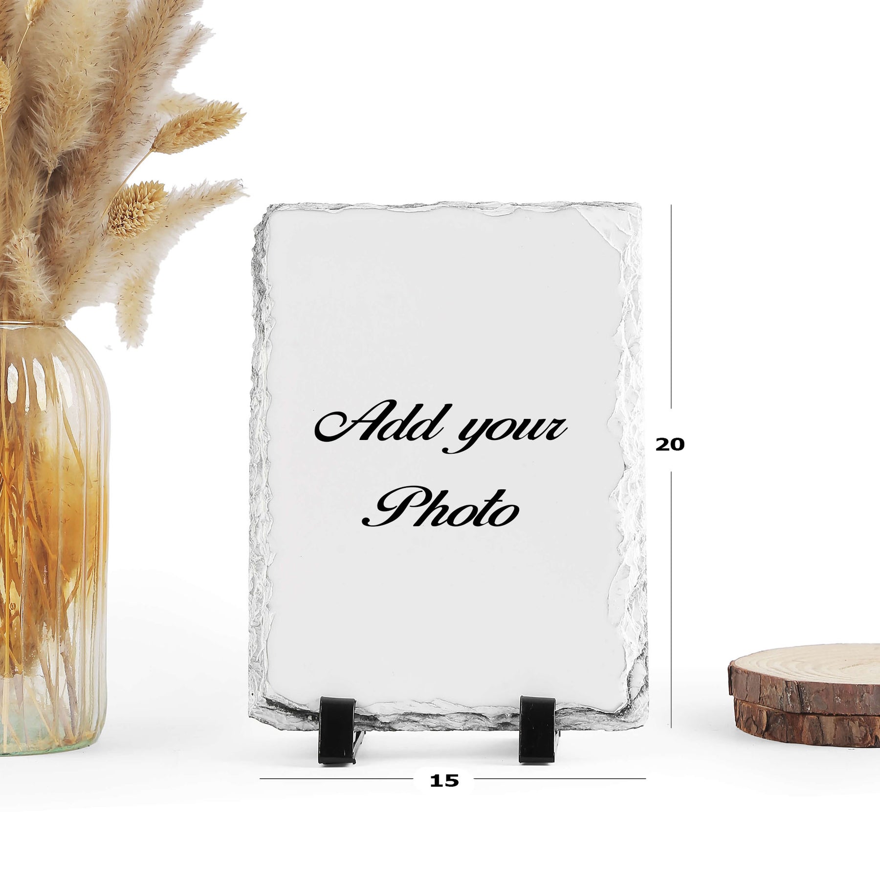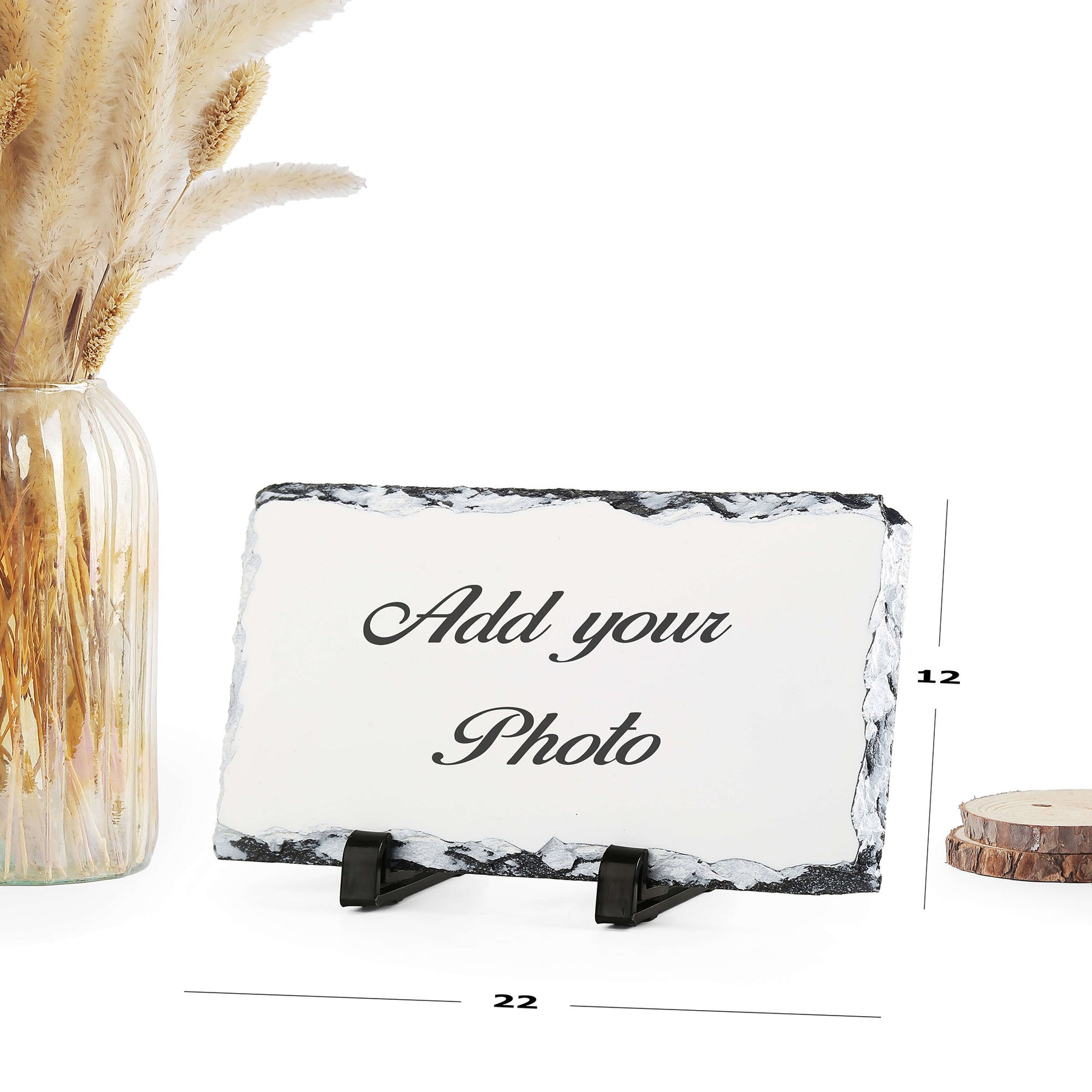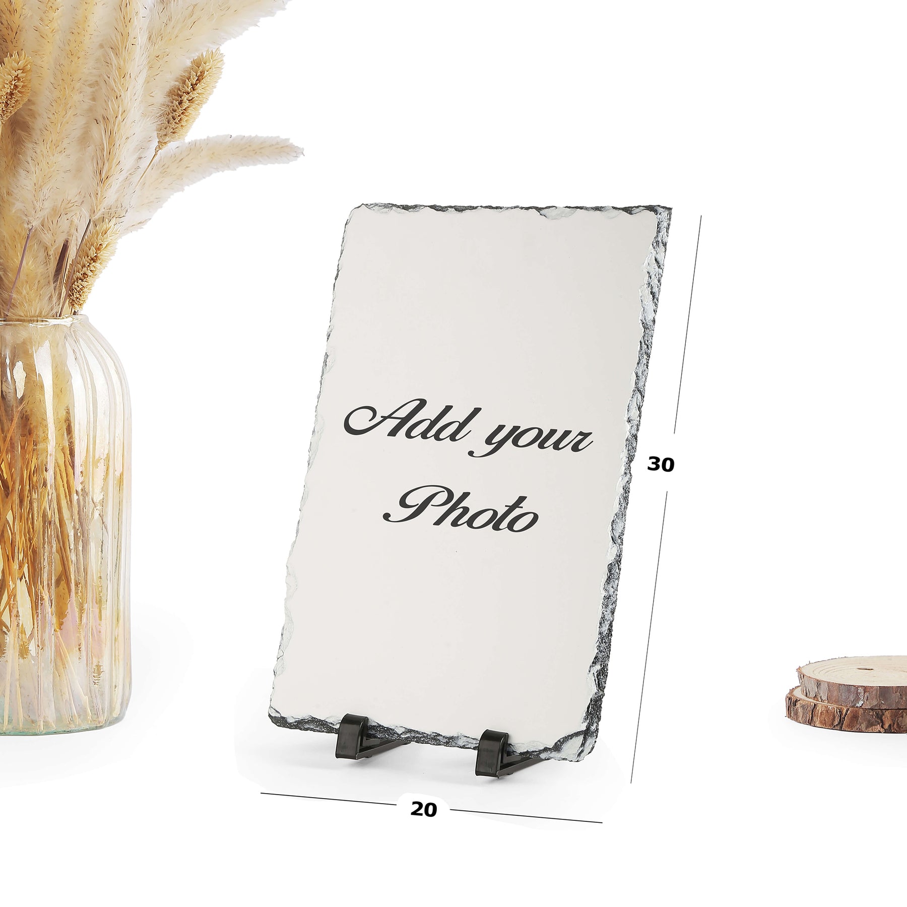 Display cherished memories with our Rock Photo Slates. Customized with your photo and text. Perfect for any shelf, desk, or mantelpiece.