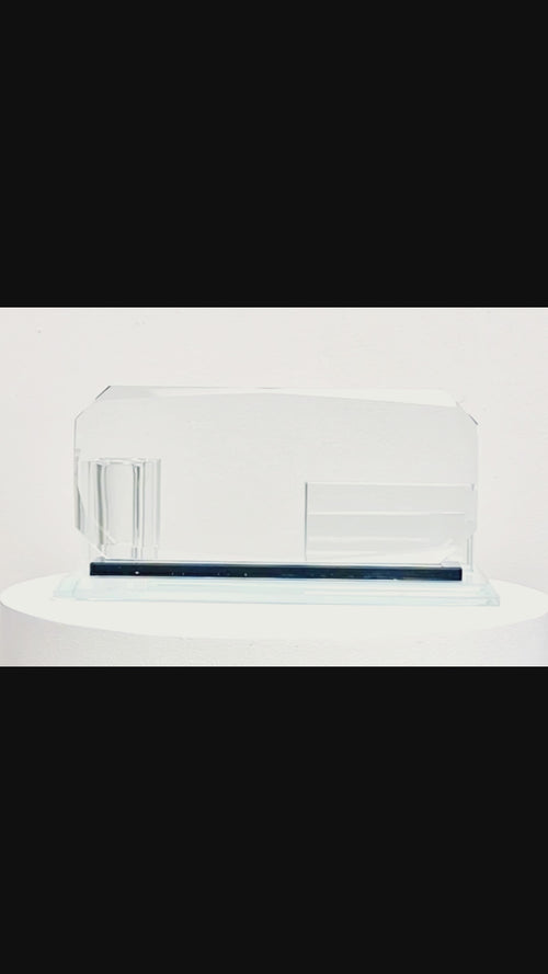 Enhance your office with the 3 in 1 Crystal Desk Name Plate—a perfect blend of style, practicality, and professionalism. Crafted from high-quality crystal, it prominently showcases your name while doubling as a convenient organizer and pen holder. It's clear, polished surface adds a refined touch to any workspace, helping you make a strong impression with every interaction. Keep your desk neat and your identity clear with this elegant, multifunctional accessory.
