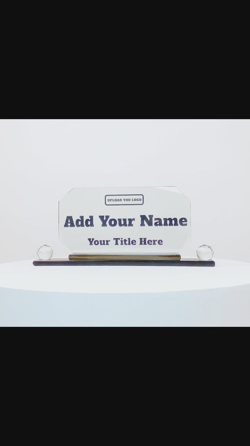 Elevate your desk with our Octagon Crystal Desk Name Plate! Personalize it with your name, title, logo, and text, and choose your fonts and colors.